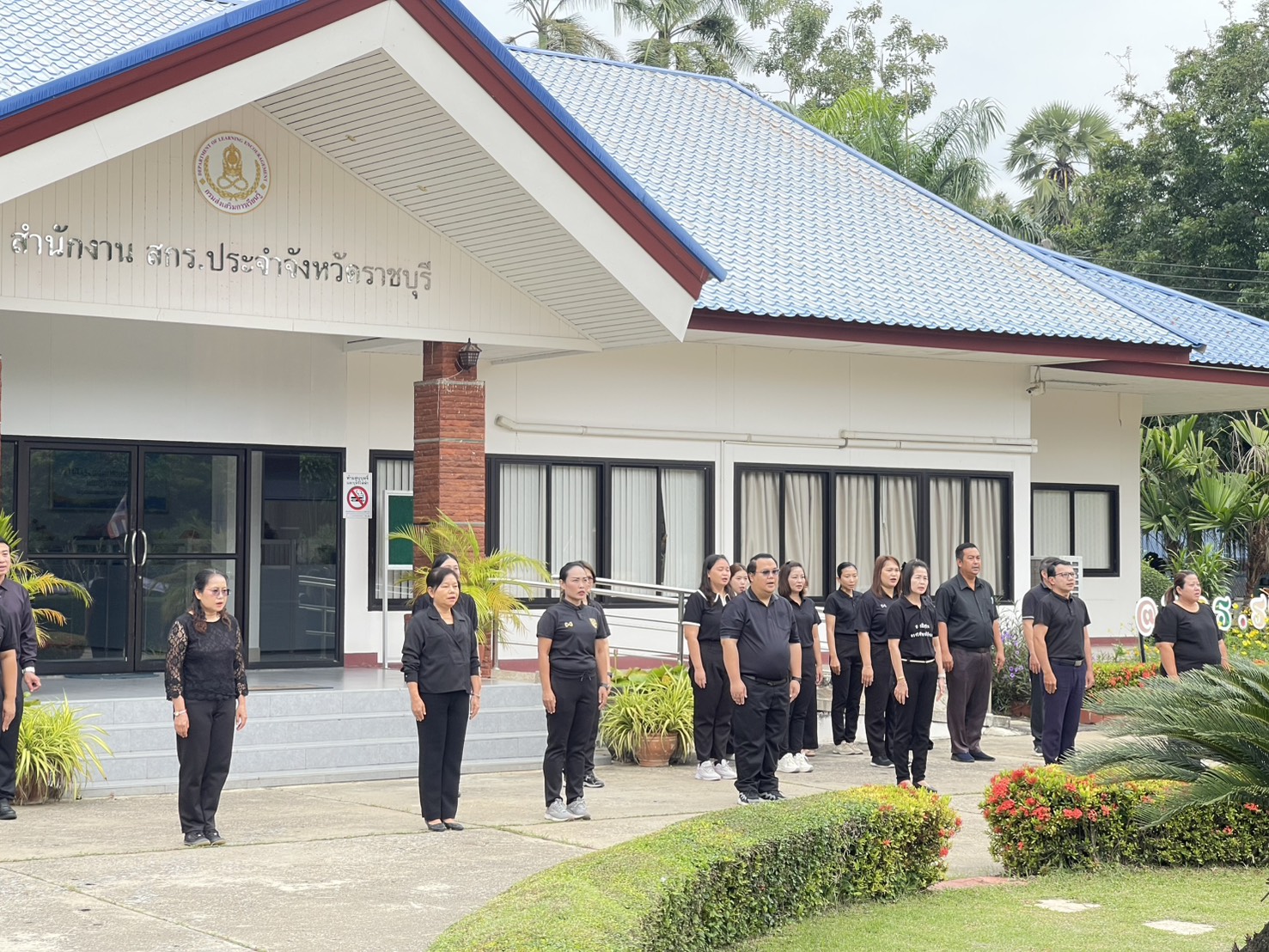 ผู้อำนวยการสำนักงานส่งเสริมการเรียนรู้ประจำจังหวัดราชบุรี นำข้าราชการและบุคลากรผู้ปฏิบัติงานเข้าร่วมกิจกรรมเข้าแถวเคารพธงชาติ สวดมนต์ไหว้พระ
