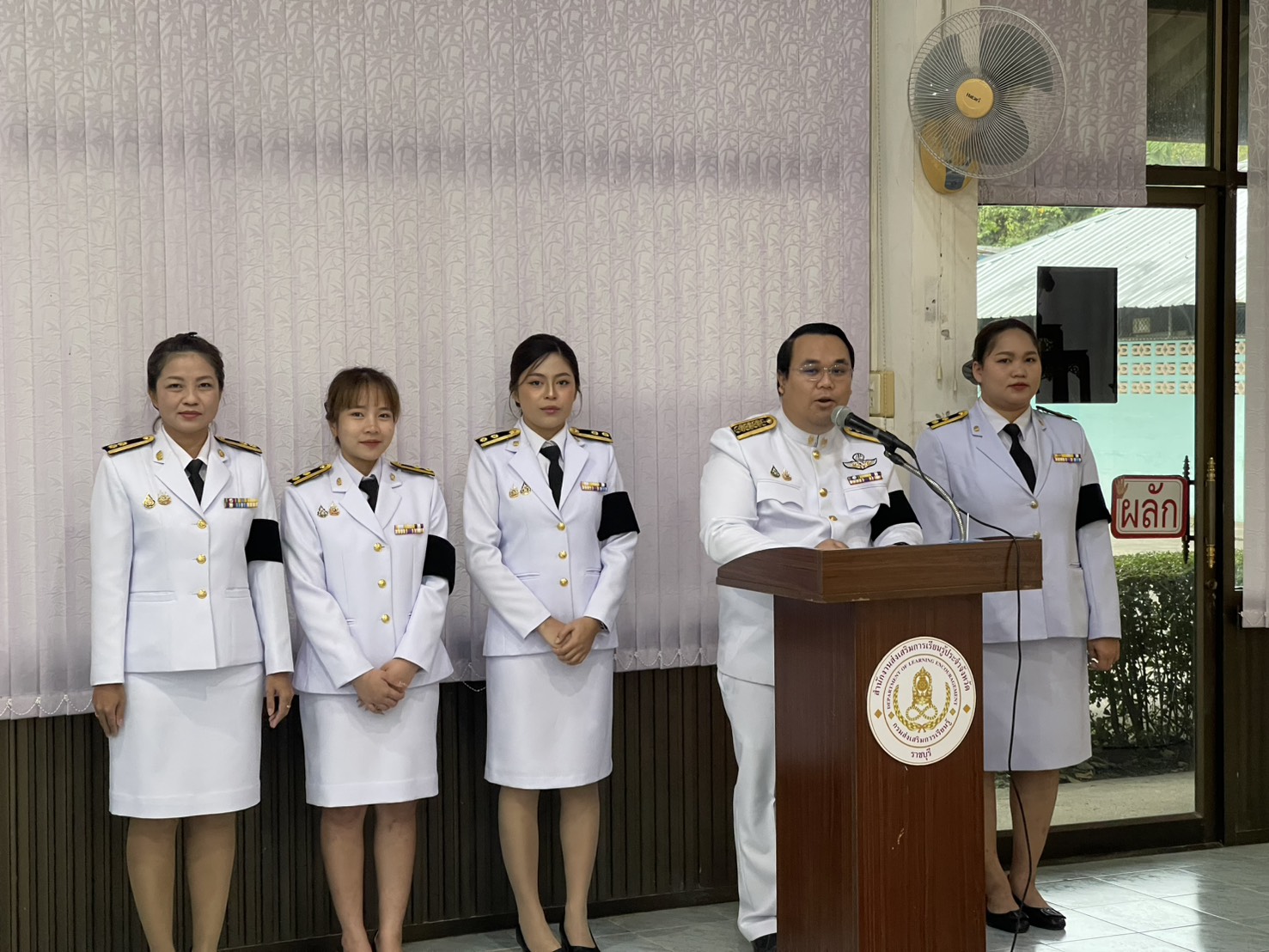ผู้อำนวยการสำนักงานส่งเสริมการเรียนรู้ประจำจังหวัดราชบุรี เป็นประธานอัญเชิญเครื่องราชอิสริยาภรณ์ ชั้นสายสะพายและชั้นต่ำกว่าสายสะพาย ประจำปี พ.ศ.๒๕๖๕ - ๒๕๖๗ เบื้องหน้าพระบรมฉายาลักษณ์ พระบาทสมเด็จพระเจ้าอยู่หัว